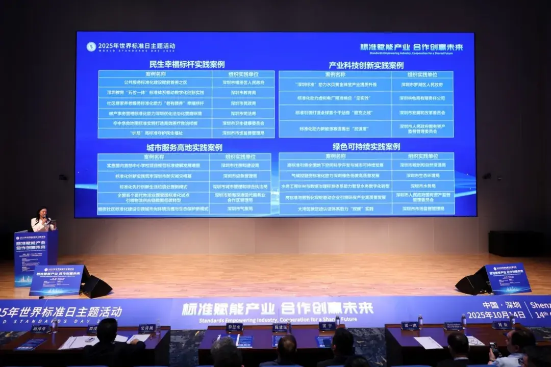 10月14日,以“標(biāo)準(zhǔn)賦能產(chǎn)業(yè),合作創(chuàng)贏未來”為主題的2025年世界標(biāo)準(zhǔn)日主題活動(dòng)在河套科創(chuàng)中心報(bào)告廳隆重舉行。活動(dòng)由深圳市制造強(qiáng)市和質(zhì)量強(qiáng)市工作領(lǐng)導(dǎo)小組辦公室、深圳市市場監(jiān)督管理局主辦,深圳市標(biāo)準(zhǔn)技術(shù)研究院承辦,來自政府機(jī)構(gòu)、國際組織、科研院所和科技企業(yè)的代表齊聚一堂,共同探討標(biāo)準(zhǔn)在引領(lǐng)產(chǎn)業(yè)發(fā)展、促進(jìn)全球合作中的核心作用。